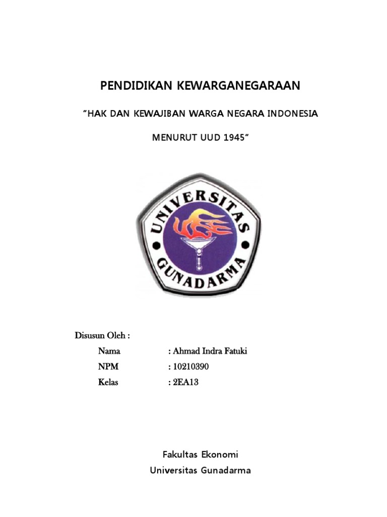 Pdf Hak Dan Kewajiban Warga Negara Indonesia Pasal 27 34 Uud 1945