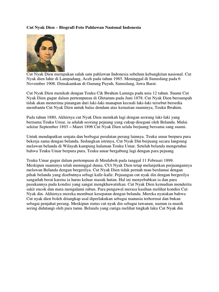 Biografi Dan Sejarah Perjuangan Cut Nyak Dien