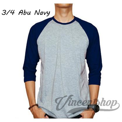 Kaos Polos Lengan 3 4 Badan Abu Lengan Navy Biru Dongker Grosir