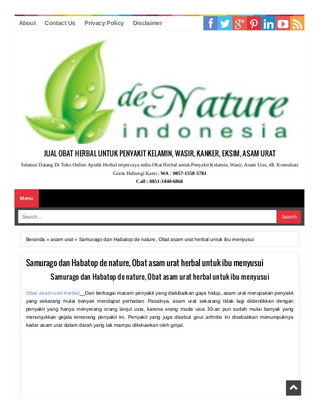 Samurago Dan Habatop De Nature Obat Asam Urat Herbal Untuk Ibu Menyu
