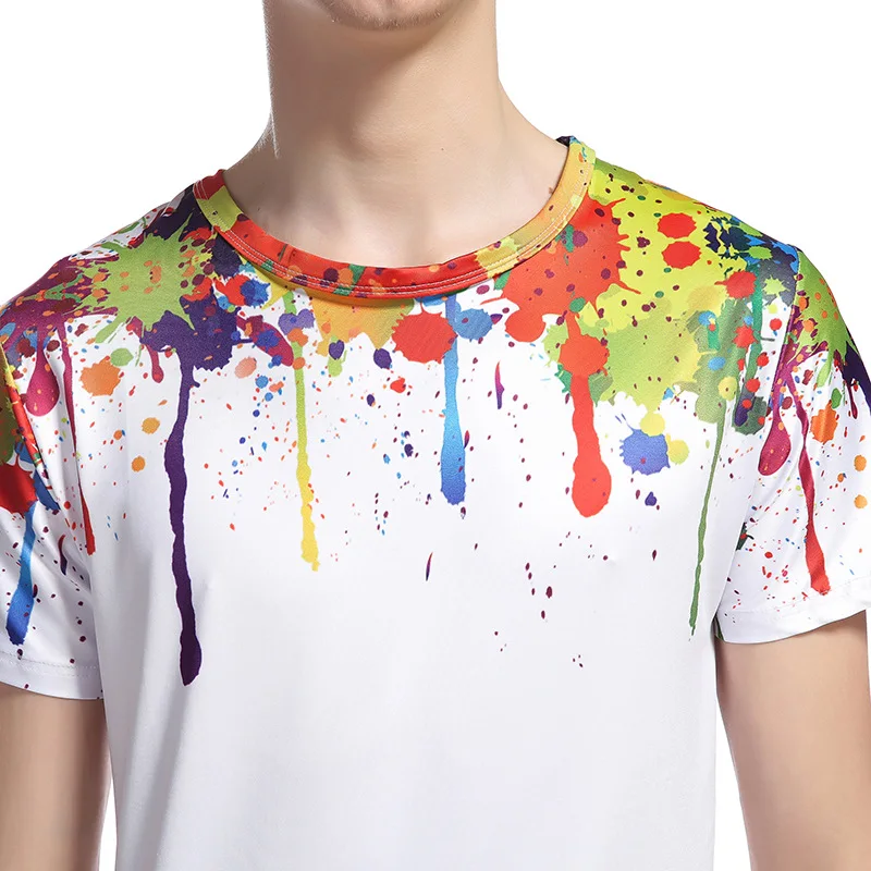 Fashion Brand Mens 3d T Shirt Percikan Cat Warna Warni Lucu T