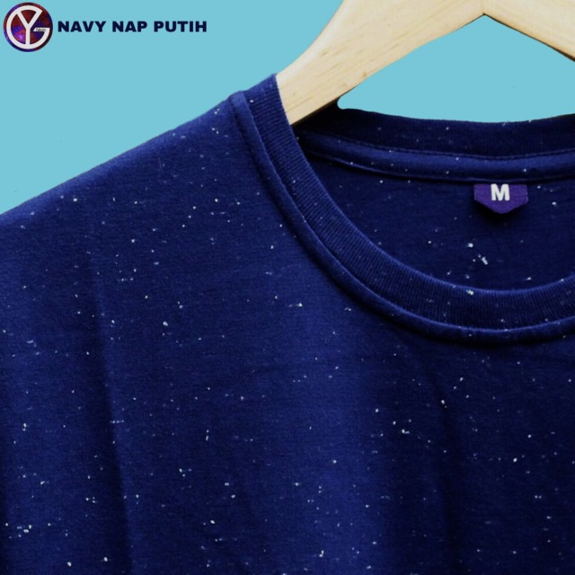 Kaos Polos Biru Navy Polka Galaxy Aplikasi Cotton Mamboo Pocket