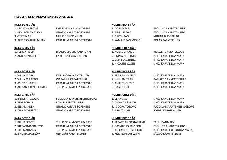 Resultatlista Adidas Karate Open 2013