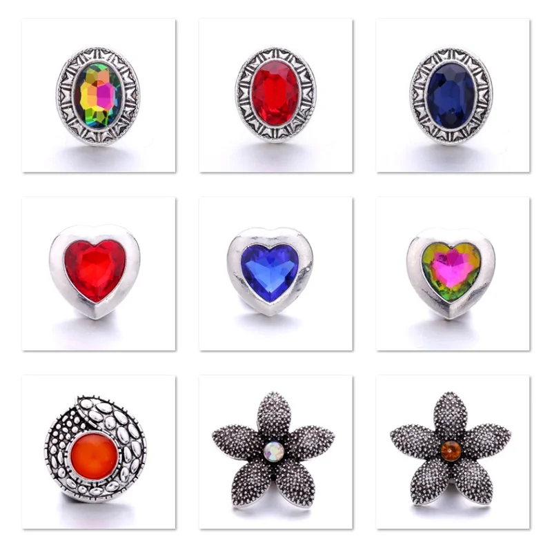 Xh5511 Kristal Cinta Bunga 18 Mm Logam Tombol Jepret Untuk Snap