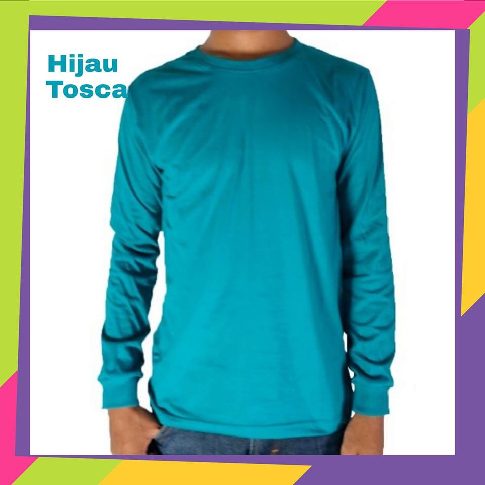 Kaos Lengan Panjang Polos Warna Hitam Merah Biru Abu Abu Hijau